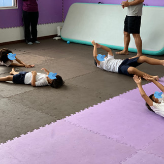 集団で起居動作を行っている