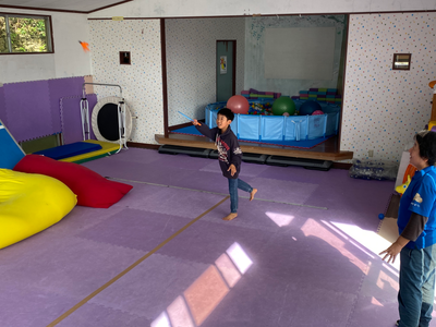 室内に入りマット登りや鬼ごっこ、ドッジボール、また子供たちで考えた遊びなどを行い、
